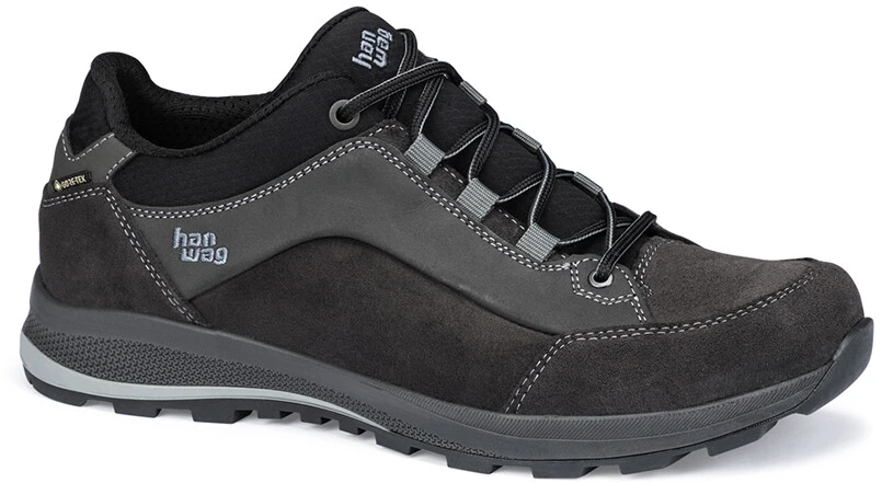 High quality nubuck and suede leather Holdbar, vandtæt og åndbar med GORE-TEX fóring Non-slip Hanwag “Endurance Hike” outsole with 10% recycled rubber Adjustable Futura tongue construction facilitates entry Pinched make and “Made in Europe”: Material 100% from European suppliers