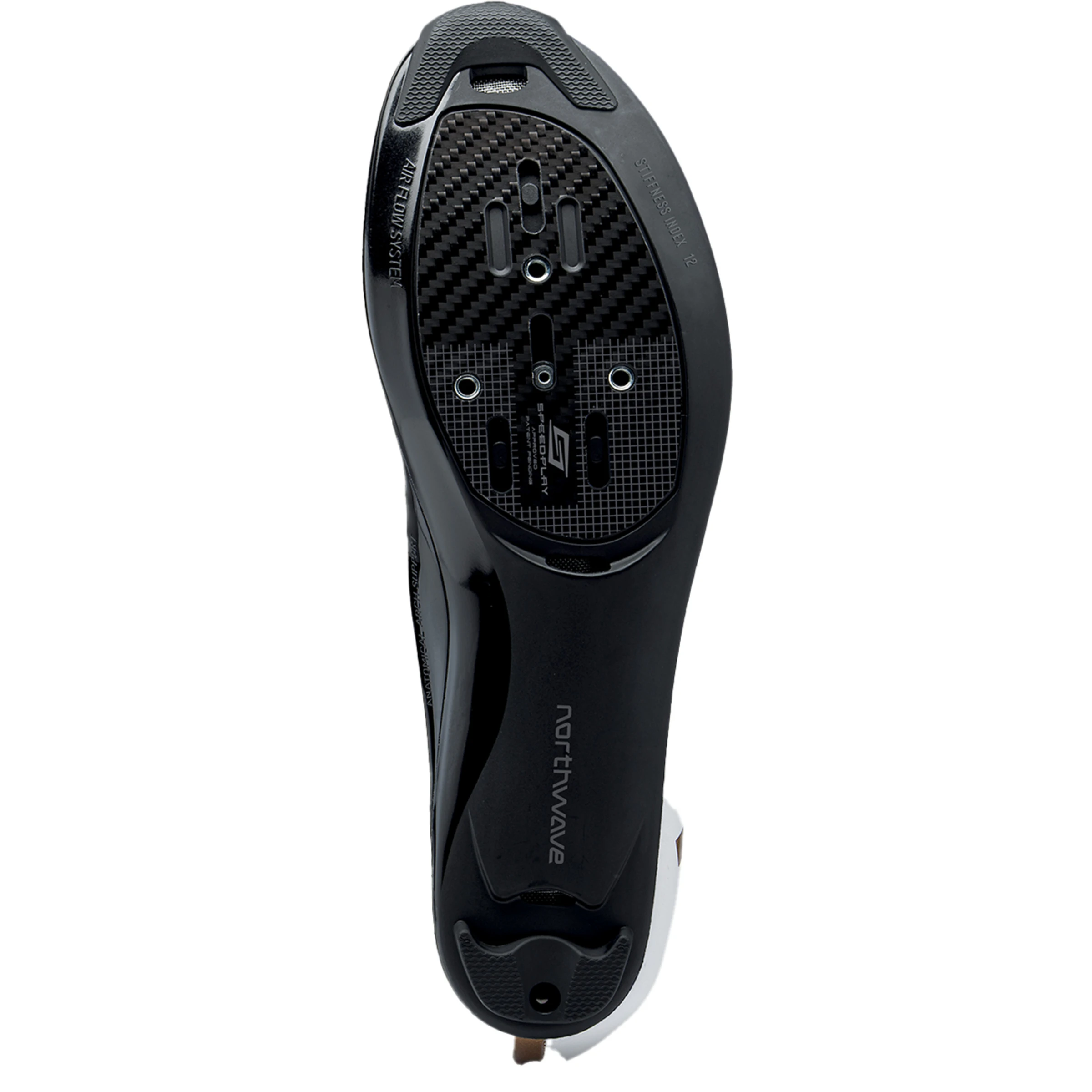 The extra stiff sole and the carbon insert in the pedal area ensure a perfect power transfer to the pedal and the unique Anatomical Arch Support® allows the shoe to adapt perfectly to your foot by means of the special TPU midsole and to offer you the best possible support.