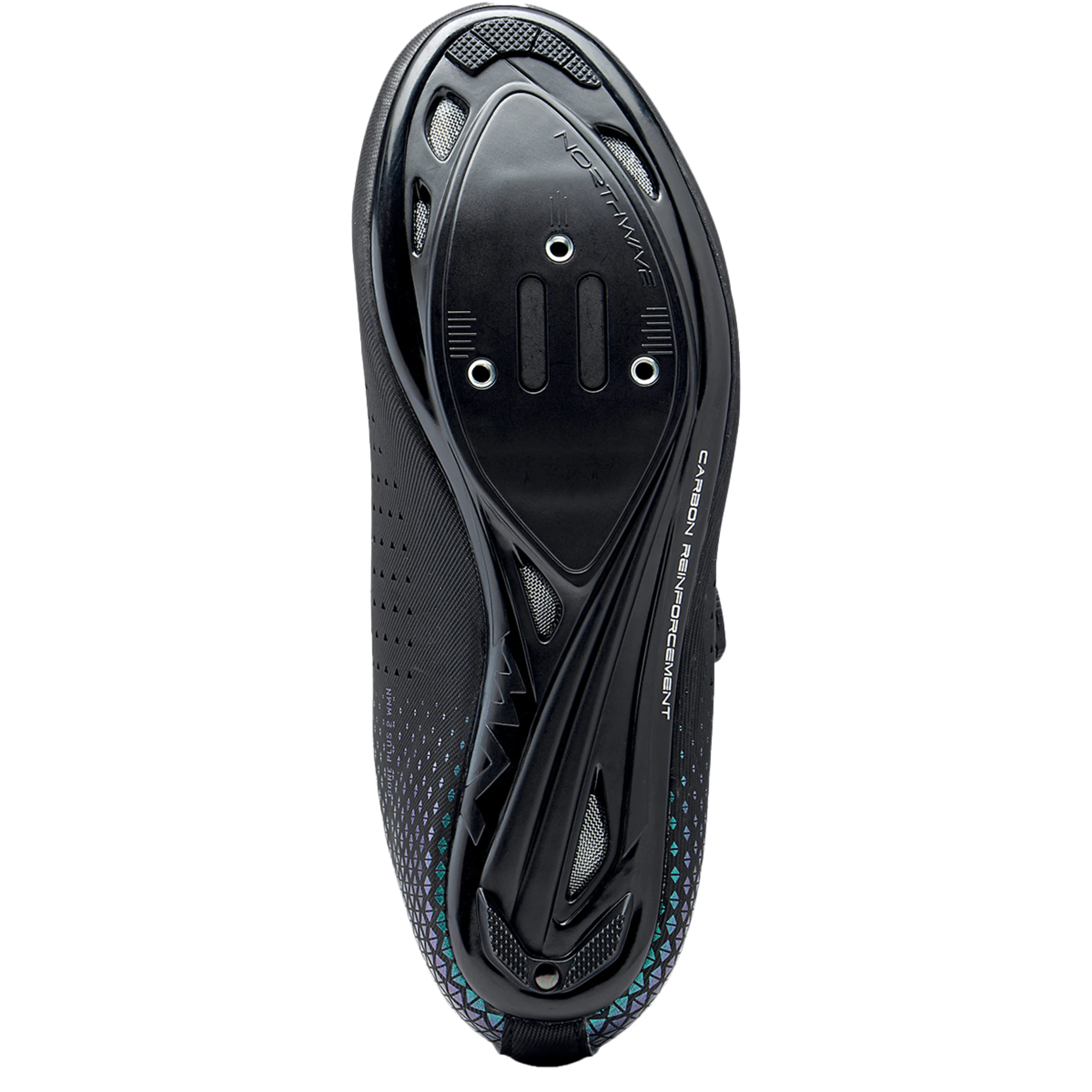 The carbon-reinforced fibreglass sole ensures perfect power transfer to the pedal and is still airy and breathable thanks to its ventilation openings.