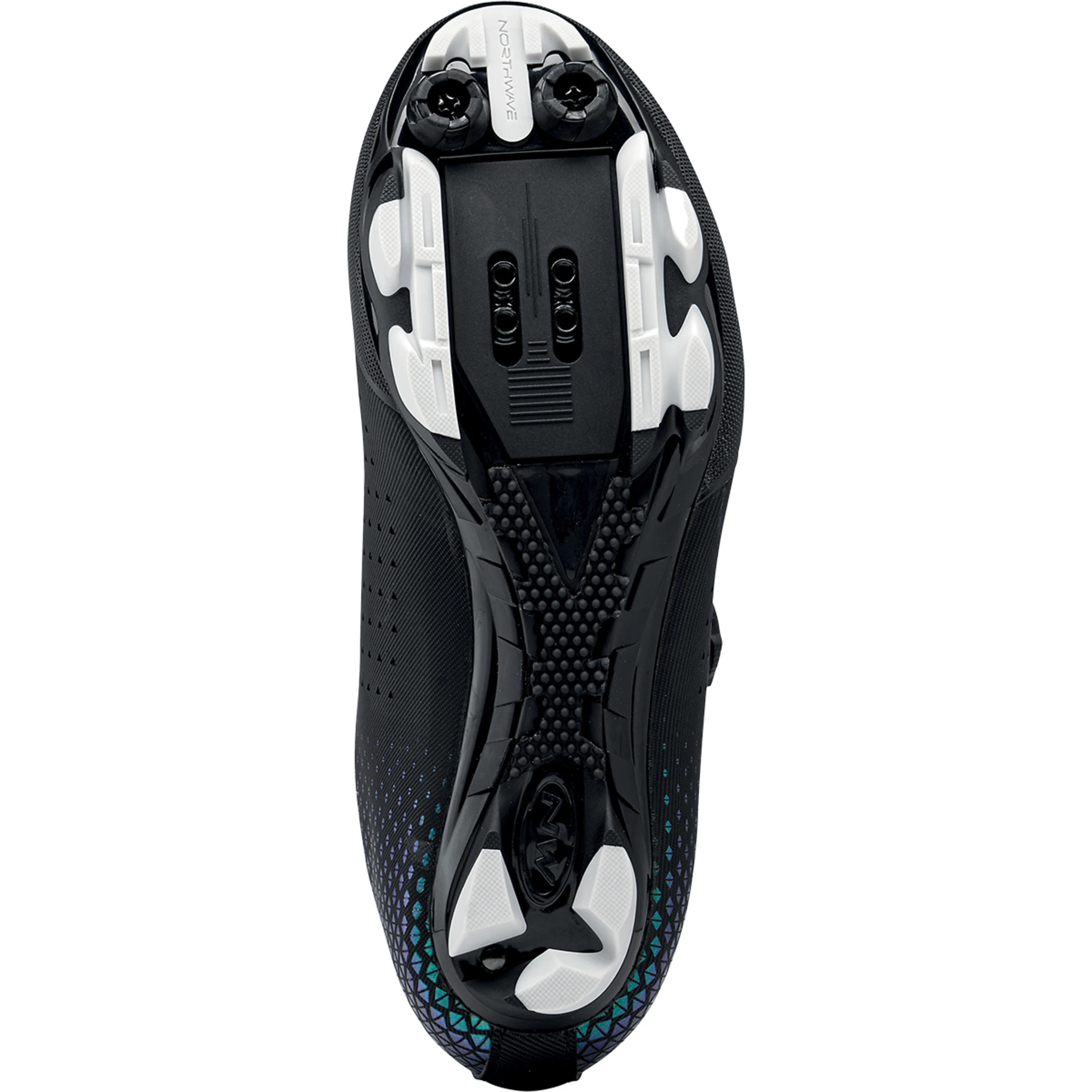The fibreglass reinforced sole offers plenty of performance with very lightweight and high efficiency. The aggressive rubber blocks and the insert at the midfoot allow you to walk safely on all surfaces, even when off the pedal.